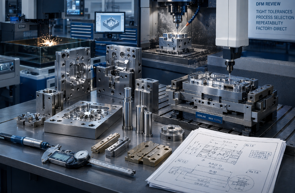 At SENLAN, our custom tooling services are focused on mold components, fixtures, gauges, and fit-critical production tooling used to support injection molding, mold building, and precision manufacturing. We do not position this as general-purpose machine work. The goal is to build tooling that works in production, not just parts that measure correctly once.